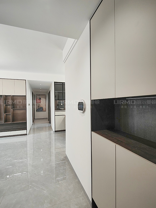 入戶玄關(guān)柜,可作為鞋柜和收納柜,實(shí)木柜體搭配PET膚感柜門,質(zhì)感超不錯(cuò)。