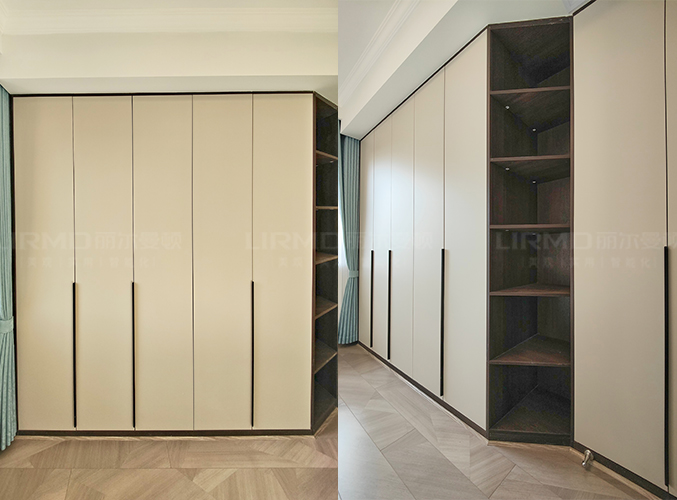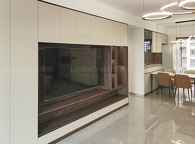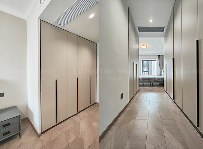 柜子一門到頂設(shè)計(jì),實(shí)木柜體搭配PET膚感柜門,質(zhì)感超不錯(cuò),多組設(shè)計(jì)更是實(shí)現(xiàn)收納需求,