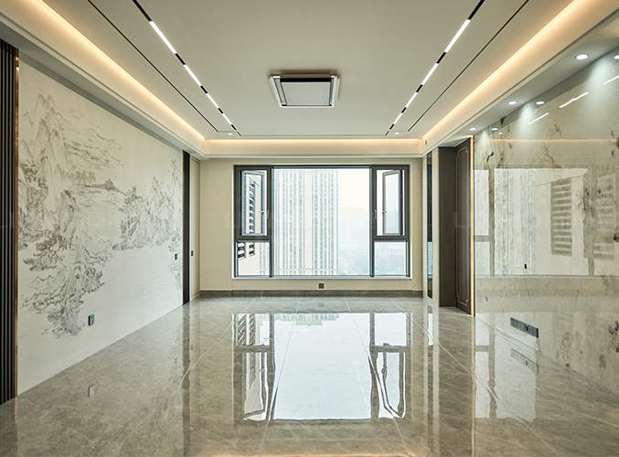 整屋通鋪瓷磚,明亮又顯大,視覺上更加干凈整潔,電視背景墻左側裝飾柜,收納方便,
