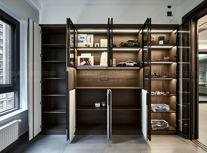 整墻柜子設計,收納和展示一體,美觀大氣。