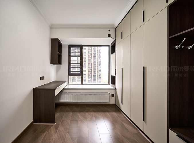 18mm厚杉木芯板,長廊兩側分別置鞋柜和儲物柜,視覺效果更好,下方懸空設計,好放置鞋子,