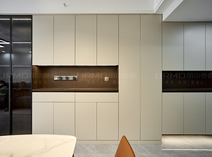 實(shí)木柜體搭配PET膚感柜門,質(zhì)感超不錯(cuò),多組一門到頂柜子設(shè)計(jì)更是實(shí)現(xiàn)收納需求,
