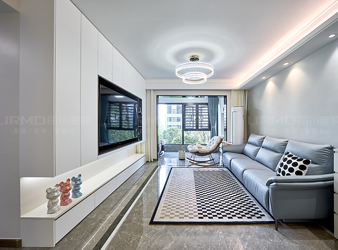 整屋通鋪瓷磚,盡顯大氣,整墻電視背景墻設(shè)計(jì),右邊和下方內(nèi)嵌式設(shè)計(jì),