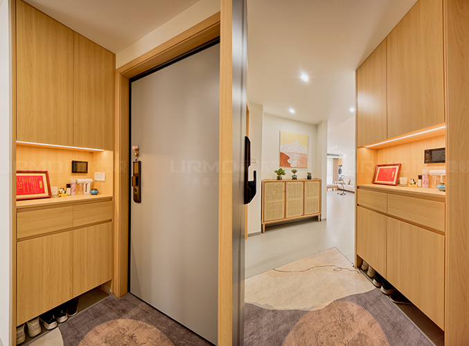 18mm厚杉木芯板,視覺效果更好,下方懸空設計,好放置鞋子,中間內嵌設計,