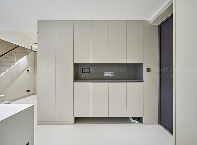 18mm厚杉木芯板,一門到頂鞋柜設計,中間內嵌設計,可以放置鑰匙包包等物品,