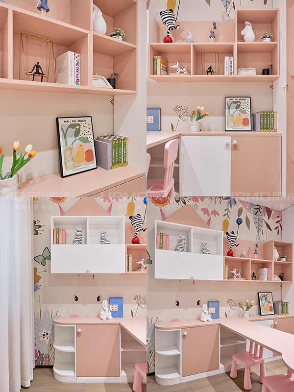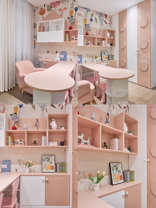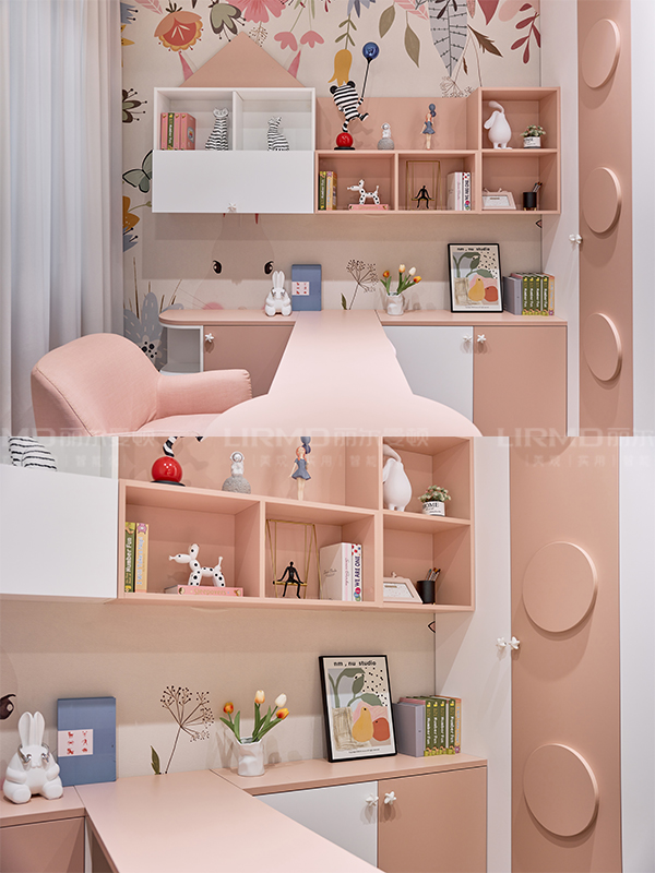 整個(gè)空間以粉色和米白色為主基調(diào),讓整個(gè)臥室充滿浪漫可愛(ài),一進(jìn)入就淪陷那種