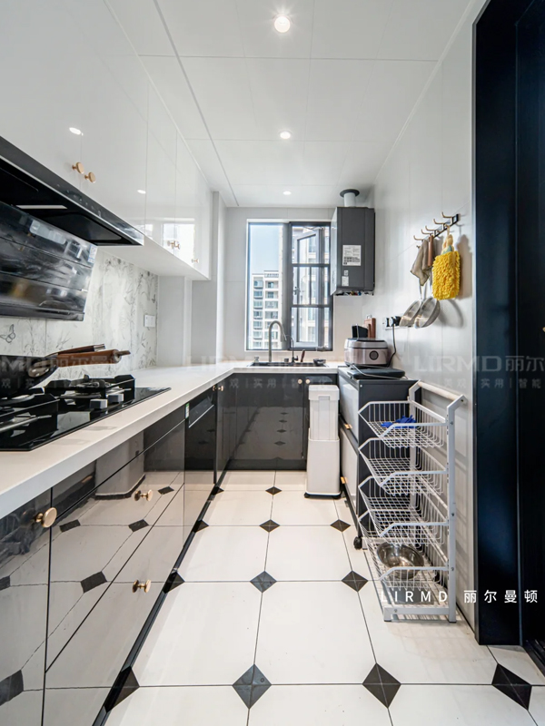 濟州灰+珍珠白+琥珀白+金剛黑的配色,珍珠白柜體提亮空間,層次感拉滿,