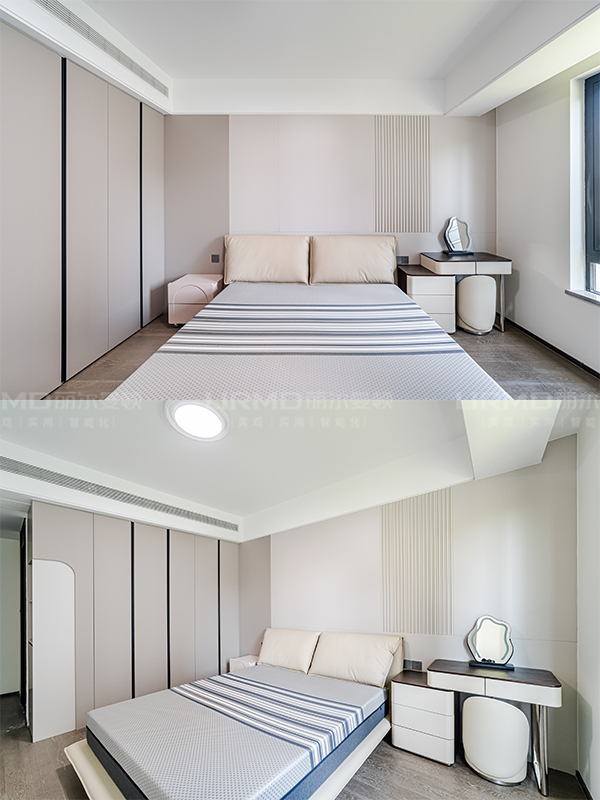 長沙靠譜裝修公司,長沙靠譜全屋定制,臥室衣柜加梳妝臺,現(xiàn)代極簡風,